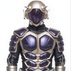 looking at viewer,full armor,white footwear,helmet,mask,cover,gauntlets,shoulder armor,armor,breastplate,robot,mecha,white gloves,tokusatsu,no humans,science fiction,hard mask,no smile,no eyes,no nose,rubber bodysuit with line,alien