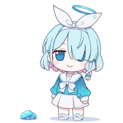 <lora:fumo_noob1:1>,fumo,chibi,1girl,solo,full body,arona \(blue archive\), blue archive, ,white background,simple background,