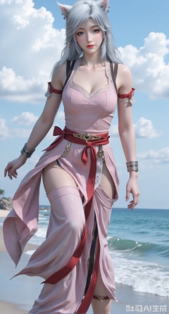 masterpiece, best quality, 1girl,solo,looking at viewer,( outdoor:1.3),sea,beach,realistic,midriff,bare shoulders,standting,hair ornament,long hair,jewelry,long dress,cowboy shot, (huge breasts, full breasts:2.99),,XyunwangshuY,Xyanqingfei,Xbigbreasts,XyinyueX,Xnvwashenian