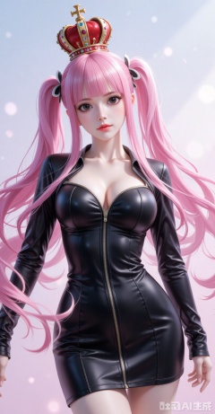 lvjing,pifu,Perona\(one piece\),crown,pink hair,black eyes,long hair,fair_skin,bangs,twintails,(blunt bangs:1.1),