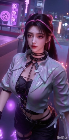 (masterpiece, best quality:1.2),Cyber qipao girl with long straight black hair, a pearl data necklace, wearing a modified cyber qipao—high collar with shoulder cutouts, cinched waist highlighting a slender torso, LED-embedded thigh-high slits, paired with over-the-knee boots and mechanical gloves. The scene is a neon street in Future Orient City, where traditional lanterns coexist with holographic shikigami projections, vending machines sell neural chips, and rain evaporates into purple mist on electronic runes. 4K ultra-high definition, delicate silk texture, soft LED lighting, smooth fair skin, East-West blended environment, rich light layers.(huge breasts:2.99),(full breasts:2.99),XyunxiaoYH3,Xfenlanzhanguopao,XbaifengsongyuYH,Xbigbreasts,XLiquidGlass,XnanxiaochengYH,Xmiaozufushi
