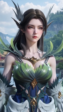 (masterpiece, best quality:1.2),1 girl, solo, long hair, black hair, hair accessories, clothing, cleavage cuts, long dress, jewelry, upper body, earrings. Background is outdoor, sky, clouds, water, trees, architecture, landscape, lantern, mountain, dragon, architecture, bridge, east Asian architecture, fog, pagoda,(huge breasts:2.99),(full breasts:2.99),Xaili2,XyunxiaoYH5,XlinziyueXZ,XtuliH,Xbigbreasts,XMedusaQueen,Xmiaozushaonv,Xkejinnvdi,Xbijinvshen