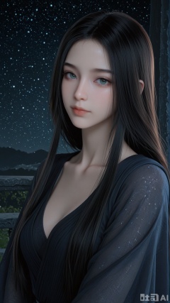 1girl, solo, YY clothes, exquisite skin, upper, looking at viewer, even illumination, very awa, starry sky background,