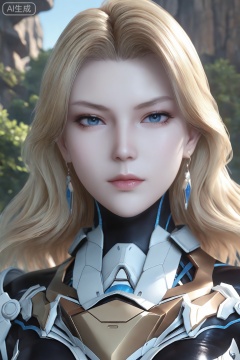 1girl, solo, short hair, blue eyes, blonde hair, jewelry, earrings, lips, looking at viewer, bodysuit, portrait, realistic, nose,