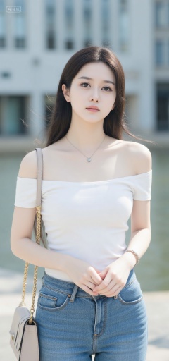 1girl,solo,long hair,handbag,bag,jewelry,denim,brown hair,looking at viewer,blurry background,blurry,necklace,own hands together,earrings,outdoors,jeans,breasts,lips,shoulder bag,off shoulder,cowboy shot,black hair,, Negative prompt: ng_deepnegative_v1_75t,(badhandv4:1.2),EasyNegative,(worst quality:2),,nsfw, Steps: 20, Sampler: Euler, CFG scale: 3.5, Seed: 376820819, Size: 720x1536, Model hash: 49fe535dad, Model: 星梦·电影&电视剧_Film_fp8.safetensors, Denoising strength: 0, RNG: CPU, Lora 1: F.1极致摄影-清颜冷杉, Lora Hash 1: 0214f6755f, Lora Weight 1: 0.8, vae_name: automatic