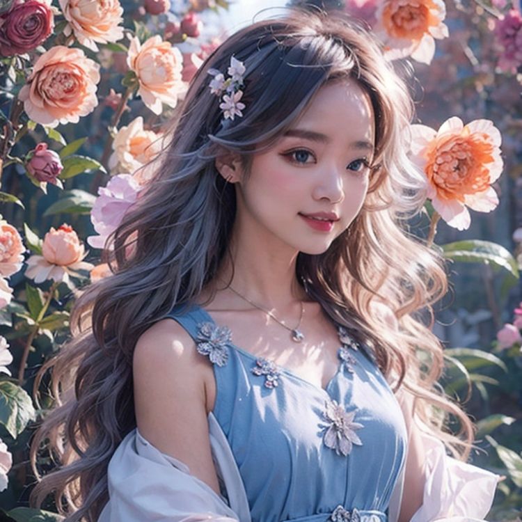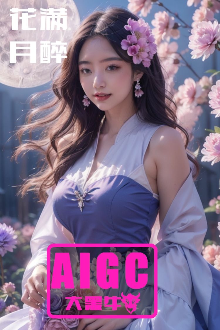 灵感来自老妈给的牡丹图,马上中秋了,干脆就做一个,主要提示词1girl,flower,blue dress,Huge flowers,moon,无脑输就可以