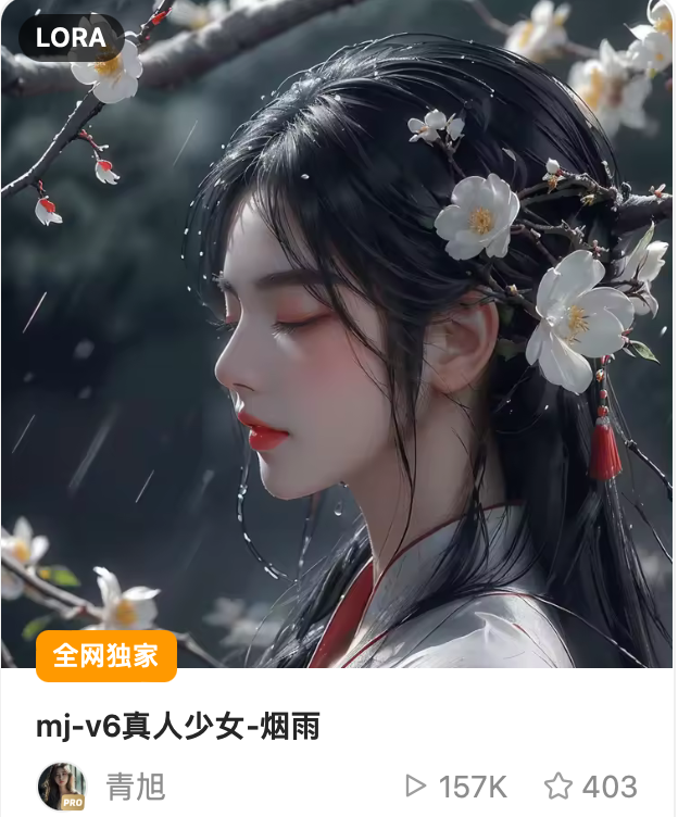 LoRA全称低秩适应性网络(Low-Rank Adaptation),是诞生于大语言模型的技术。而在Stable Diffusion社区,LoRA焕发了新的生命力。LoRA可以理解为SD模型的插件,以极小的模型参数量和少量的训练样本,就能微调出特定的任务/画风,实现定制化需求。下图展示了吐司平台上的创作者训练的三个LoRA,用户可以根据不同的生图需求,在社区海量的内容中找到合适的LoRA,甚至可以训练出自己的专属LoRA。