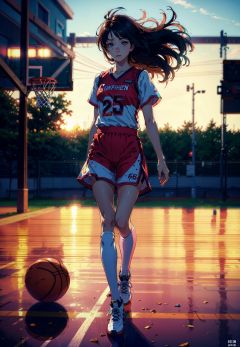1girl,solo,(full body), (closed mouth),beautiful detailed eyes, pose, narrow waist,basketball uniform,