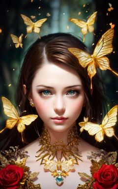 8k portrait of beautiful cyborg with brown hair, intricate, elegant, highly detailed, majestic, digital photography, art by artgerm and ruan jia and greg rutkowski surreal painting gold butterfly filigree, broken glass, (masterpiece, sidelighting, finely detailed beautiful eyes: 1.2), hdr