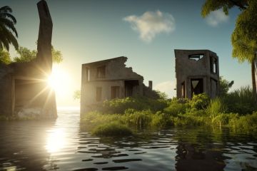 +dvArchModern style, underwater city, house, submerged, green ocean water, fossils, underwater ruins, photorealistic, hyperrealistic, 4k, shadows, depth, volumetric light, dramatic light, diffused light, desaturated, low contrast, hdr, fine details, subtle details, cracks, plants, fish, sun rays, god rays