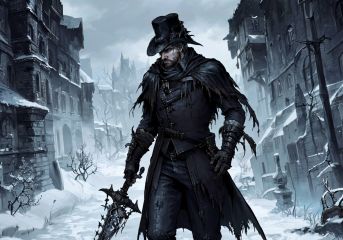 Bloodborne,<lora:Bloodborne-000075:0.6>,1men:1.2,holding sword:1.3,solo:1