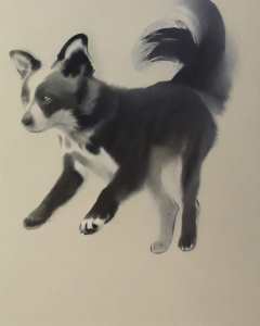 <lora:zyd232_InkStyle_v1_0:1.0> zydink, monochrome, ink sketch, running dog, from side, simple background