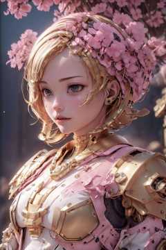 A girl holding a pink fox,color grading,(glowing haze)++ (soft glow)+ digital art render,pink,gold,<lora:SNM:0.8>SNM,flower,<lora:XSM:0.5> <lora:gundamChilloutMix_v1:0.3>,Mechs,Gundam,, anatomically correct, UHD, ccurate, textured skin, high details, best quality, super detail, award winning, high quality, retina, 16k