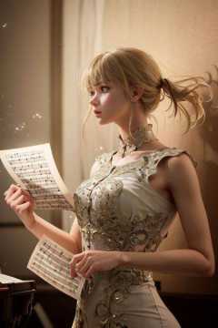 <lora:hipoly_3dcg_v7-epoch-000012:0.5>, 3d, realistic, masterpiece, best quality,1girl, Musician,Holding an instrument, passionate expression, sheet music, stage or practice room background, musical notes floating around,rim lighting, side lighting, cinematic light, ultra high res, 8k uhd, film grain,best shadow, delicate, RAW, light particles,detailed skin texture, detailed cloth texture, beautiful detailed face, intricate details, ultra detailed