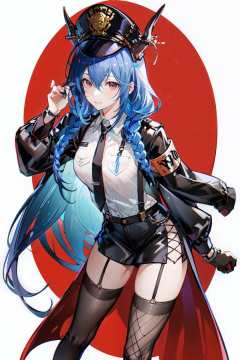 ,(Masterpiece:1.2, high quality), (pixiv:1.4),AGM,1girl, solo, handcuffs, fishnets, thighhighs, hat, breasts, braid, cuffs, garter straps, black hair, necktie, long hair, twin braids, shirt, white shirt, horns, looking at viewer, fishnet thighhighs, skirt, long sleeves, heart, red eyes, dragon horns, black headwear, tail, hair ornament, large breasts, leaning forward, black necktie, two-tone background, hand on own thigh, red background, cowboy shot, collared shirt, bangs, closed mouth, police hat, black skirt, suspenders, holding, police uniform, police, dragon girl, dragon tail, shorts, ch'en (arknights), twintails, thighs, uniform, policewoman, hair between eyes, smile, white background, miniskirt, armband, flower, see-through  <lora:AGM:0.8>
