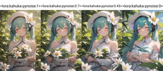 kahuka1, 1girl, solo, long hair, hatsune miku, dress, flower, hat, white dress, closed eyes, holding hat, holding, hat removed, smile, upper body, white flower, leaf, holding clothes, sun hat, headwear removed, bare shoulders, very long hair, aqua hair, twintails, closed mouth, facing viewer, bangs <lora:kahuka-pynoise:1>