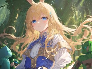 detailed and intricate,(originality), ((an extremely delicate and beautiful)),upper body,Normal human body structure,1 loli/(detailed cute anime face,,an extremely delicate and beautiful girl,blonde_hair,blue_eyes,small_breasts,Rabbit ear_decoration,long_hair,full dress,/)Accent Lighting,(nature to forest/(style of Minecraft/)),