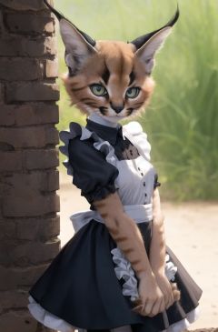masterpiece, best quality,1girl,furry,cowboy shotcaracal,caracalcat,ningmao,kitten,adorable,maid dresss, looking at viewer,  <lora:Caracal:0.75>