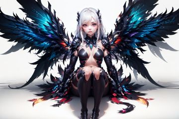 <lora:chibangnv:0.7>chibangnv,1girl,wings,White background,
