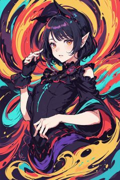 (flat color:1.1),(colorful,yoneyamamai:1.3),(masterpiece:1.2), best quality, masterpiece, original, extremely detailed wallpaper, looking at viewer,1girl,solo,floating colorful water