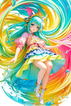 (flat color:1.1),(colorful:1.3),(masterpiece:1.2), best quality, masterpiece, original, extremely detailed wallpaper, looking at viewer,1girl,solo,floating colorful water