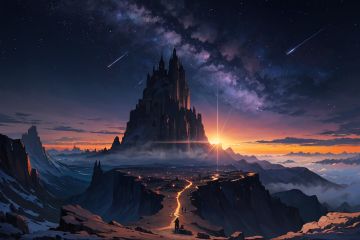 (masterpiece:1.1),(best quality:1.2),(ultra highres:1.0),(((best quality))),(((ultradetailed))),(((masterpiece))),(no human),illustration, landscape, sunset,meteor shower, romantic,dramatic, picturesque, breathtaking, radiant,gorgeous, scenic, panoramic,dreamy,fairytale, whimsical,vast sky, bright colors, purplish clouds,sunrays busting through
