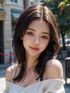 1girl, offshoulder, smile, cute, waist upbest quality, masterpiece, (photorealistic:1.4)
