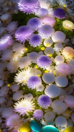 eruanshi,flower,(no humans:1.5),(Little Daisy:1.2),This photo is a beautiful beach in the moonlight,There are many colored chrysanthemums and transparent flowers scattered on the beach,Round,shiny pebbles,Small chrysanthemums and pebbles with agate texture gradually become white and beautiful light pink small chrysanthemums and pebbles,It gives off a faint yellow,Pale white small chrysanthemums and pebbles exude purple,colorful,Crystal clear,Sparkling,Dazzling lights,ROSE Showers in Opal,Small chrysanthemum falling,garden style,HD 8kv super wide angle,On the super pebbles,very beautiful,wide angle lens,Smooth and delicate,glowing detail ar 9:1,