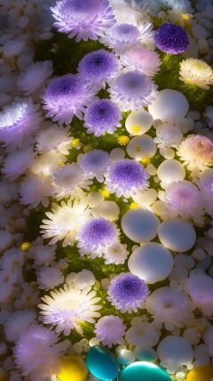 eruanshi,flower,(no humans:1.5),(Little Daisy:1.2),This photo is a beautiful beach in the moonlight,There are many colored chrysanthemums and transparent flowers scattered on the beach,Round,shiny pebbles,Small chrysanthemums and pebbles with agate texture gradually become white and beautiful light pink small chrysanthemums and pebbles,It gives off a faint yellow,Pale white small chrysanthemums and pebbles exude purple,colorful,Crystal clear,Sparkling,Dazzling lights,ROSE Showers in Opal,Small chrysanthemum falling,garden style,HD 8kv super wide angle,On the super pebbles,very beautiful,wide angle lens,Smooth and delicate,glowing detail ar 9:1,
