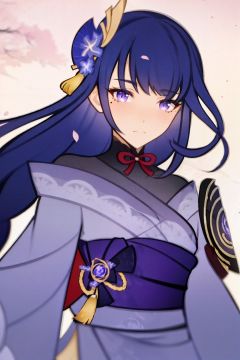 masterpiece, best quality,1girl, <lora:gmstyle:1>,wide shot,1girl, weapon, raiden shogun, japanese clothes, solo, purple hair, polearm, purple eyes, hair ornament, holding weapon, long hair, kimono, sash, holding, bangs, looking at viewer, obi, bridal gauntlets, flower, obiage, holding polearm, obijime, closed mouth, cherry blossoms, mole under eye, ribbon, mole, naginata, petals, blurry, braid, long sleeves, wide sleeves, spear, tassel, armor, blunt bangs, tomoe (symbol), hair flower, floral print, simple background, sidelocks