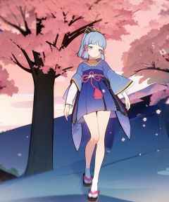 masterpiece, best quality,1girl, <lora:gmstyle:1.2>,cherry blossoms, tree,1girl,kamisato ayaka, blue hair,hair ornament, ponytail,japanese clothes,  full body