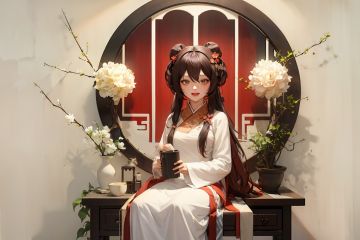masterpiece, best quality, <lora:hanfu:1>,hanfukozue, 1girl, brown hair, hu tao (genshin impact), branch, solo, long hair, flower, smile, window, chinese clothes, ahoge, open mouth, red eyes, twintails, lantern, plum blossoms, looking at viewer, bird, dress, flower-shaped pupils, hair ornament, hair bun, bangs, holding, symbol-shaped pupils, hair between eyes, :d, lattice, alternate costume, double bun, hair flower, long sleeves, teeth, sidelocks, very long hair, white dress, upper teeth only, tree, tassel, red shirt, sitting