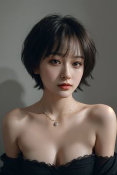 fashion photography portrait of 1girl, offshoulder, fluffy short hair, soft light, rim light, beautiful shadow, low key, (photorealistic, raw photo:1.2), (natural skin texture, realistic eye and face details), hyperrealism, ultra high res, 4K, Best quality, masterpiece, necklace, (cleavage:0.8), in the dark
