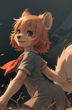 masterpiece, best quality,4k,hdr,perfect lighting 1girl,furry female,solo,moscow,soviet poster,young pionner,battlefield,boomkitten,adorable,black school uniform, looking at viewer,red neckchief,Communist ideology,dynamic pose,high detail fur,rat tail,from sidekemono friends, <hypernet:furry_kemono:0.5> <lora:output_name:0.4>,quokka <lora:ankamaV2:0.5>