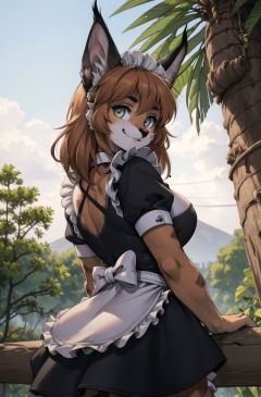 masterpiece, best quality,1girl,furry femal,outdoors,caracal,caracalcat,ningmao,kitten,adorable,maid dresss, looking at viewer,<lora:Caracal:0.7> <hypernet:furry_kemono:0.5> <lora:rd-rn-v3:0.5>