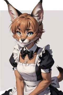 masterpiece, best quality,1girl,furrycaracal,caracalcat,ningmao,kitten,adorable,maid dresss, looking at viewer,<lora:Caracal:0.7> <hypernet:furry_kemono:0.5>