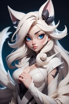 original-art, inked, lineart, masterpiece, best quality, 1girl, kindred, lamb, white fur, white skin, black mask, blue eyes,