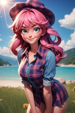 3dmm,masterpiece, high quality best quality,1girl, bangs, beach, blue_sky, blush, bow, breasts, checkered, checkered_shirt, checkered_skirt, cloud, cloudy_sky, collarbone, day, envelope, giving, grass, hair_bow, heart, holding, holding_letter, horizon, incoming_gift, kazami_yuuka, leaning_forward, lens_flare, letter, light_rays, long_hair, looking_at_viewer, love_letter, mountain, mountainous_horizon, ocean, outdoors, plaid, plaid_background, plaid_bikini, plaid_bow, plaid_bowtie, plaid_bra, plaid_dress, plaid_headwear, plaid_jacket, plaid_legwear, plaid_necktie, plaid_neckwear, plaid_panties, plaid_pants, plaid_ribbon, plaid_scarf, plaid_shirt, plaid_skirt, plaid_vest, pov, shirt, skirt, sky, smile, solo, sun, sunbeam, sunlight, tree, unmoving_pattern