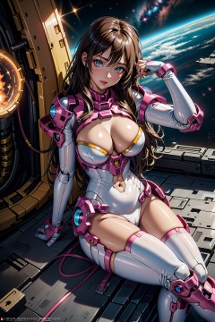 a man, city,red power armor,brown hair,The glowing energy ring on the chest,realistic, building, glowing, science fiction,vibrant details,beautiful background, octane render, H. R. Giger style,best quality, masterpiece, illustration, an extremely delicate and beautiful, extremely detailed ,unity ,wallpaper,photo-realistic,Amazing, finely detail,best quality,official art, extremely detailed,unity,Pink Mecha,Honey Mecha,machinery,, Mecha,lightning,drawing,真实,照片,32k,高清,32