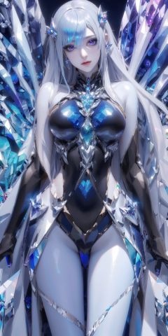 masterpiece, best quality, masterpiece,best quality,official art,extremely detailed CG unity 16k wallpaper,masterpiece, (science fiction:1.1), full body,(ultra-detailed crystallization:1.5), (crystallizing girl:1.5), kaleidoscope, ((iridescent:1.5) long hair), (glittering silver eyes),cowboy shot, surrounded by colorful crystals, blue skin, (skin fusion with crystal:1.8),Nayuta_Area_Reception,asuna \(sao\),1girl,mecha body,breasts,wings