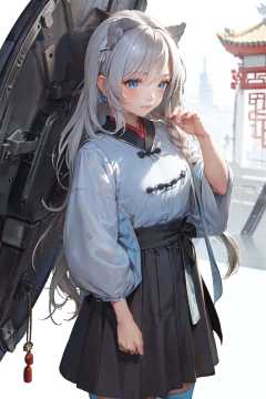 [(Transparent background:1.5)::5],1girl,(gray hair:1.1), beautiful detailed eyes,gray eyes,bangs,side braid,((((sky blue:1.2) and red Ancient Chinese (Ru skirt)))),(White stockings),large breasts,(Dynamic actions),Dark, empty, nighttime, young girl,(Random actions) , solitary, contemplative, golden ratio, dim lighting, stillness, serenity, introspection, peaceful, moonlight, window, raindrops, distant cityscape, quiet, peacefulness,close up