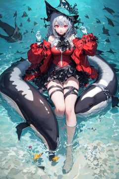(((chibi))),(loli),1girl,solo,(((Underwater))),posing,abyssal,(((killer whale))),Film perspective,Selfie,Fisheye effect,<lora:arknightsSkadiThe_v10:1>,red hat,red skadi