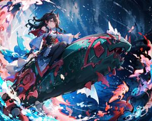youweixuanyu,masterpiece,best quality,Highest picture quality,a girl riding on a fish,1girl,<lora:youweixuanyu_v4:0.7:POKE><lora:LAS:0.5> cloud,colorful, starry,