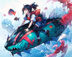 youweixuanyu,masterpiece,best quality,Highest picture quality,a girl riding on a fish,1girl,<lora:LAS:0.6> cloud,colorful, starry, <lora:youweixuanyu_v4:1>,Close-Up