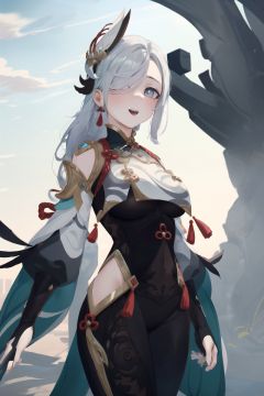 masterpiece,best_quality,official_art,extremely_detailed_CG_unity_8k_wallpaper, huge_filesize,<lora:(v4)any4.5-shenhe-000025:0.75>,gen-shenhe1, 1girl, solo, breasts, long hair, hair over one eye, large breasts, bodysuit, hip vent, hair ornament, clothing cutout, looking at viewer, breast curtain, blue eyes,1_girl,solo,good_shape,good_hands,good_legs,good_body,good_hips,good_boobs,good_face,(beautiful_face), ((intricate_detail)), (revealing clothes:1.2),(medium breasts:1.2),((finely_detailed)),seductive_smile, open_mouth,naughty_face,(ahegao),light_blush, heart-shaped pupils,,fine_fabric_emphasis,((glossy)),