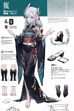 multiple views, pencil sketch, (sketch:1.25), (loli), ((no shoes)), shy, best quality, graphite \\(medium\\), ske, gradient, rainbow, note, Line draft, highres, absurdres, (ultra-detailed:1.1), (illustration:1.1), (infographic:1.2), pajamas, (all clothes configuration:1.15), (solo), perfectly drawn hands, standing, cohesive background, paper, action, (character design:1.1),<lora:kimonoClothes_v10:1>,Kimono,furisode, obi,<lora:(v1)reg-any4.5-shenhe-000010-nsfw:0.65:char>,shenhe,shenhe \(genshin impact\), full body, silver long hair, hair ornament,<lora:Anime Lineart ,Manga-like (线稿,線画,マンガ風,漫画风) Style:0.4>, <lora:Sketchy - Style:0.2>,[[delicate fingers and hands:0.55]::0.85], (detail fingers), (empty hands:1.1), bare_hands,(beautiful_face), ((intricate_detail)), (revealing clothes:1.2), clear face,((finely_detailed)), fine_fabric_emphasis,((glossy)),