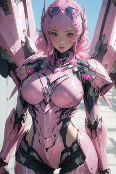best quality, masterpiece, 1girl, pink mecha body, big breasts, (Chest armor:1.3),  shinny, standing, <lora:jixieji-000007:0.8>,