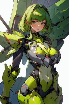 best quality, masterpiece, 1girl, green mecha body, big breasts, (Chest armor:1.3),  shinny, standing, <lora:jixieji-000007:0.8>,