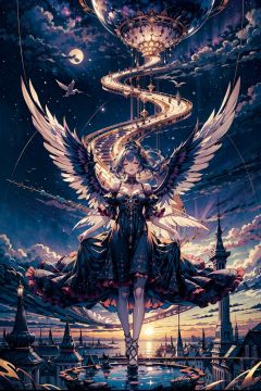 Dreamweaver diva, phantasmal, surreal, night-sky hair, dreamscape, orchestrating, symphony of slumber, dress of dusk, floating among dreams, deep night, lullaby of the subconscious, dream orchestration scene,Neck,Unity,