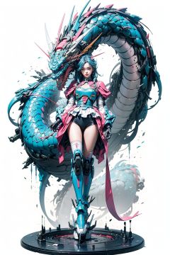 Ultra clear,(1girl:1.3),(Red/Blue/Pink/White/Black/Cyan/Purple Mech:1.1),(gundam:1.1),highly realistic,glassy translucence,full_body,Chinese Dragon,